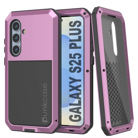 Galaxy S25 Plus Metal Case, Heavy Duty Military Grade Armor Cover [shock proof] Full Body Hard [Pink]