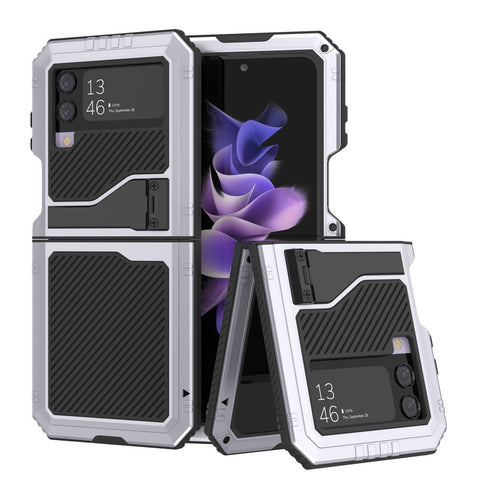 Galaxy Z Flip4 Metal Case, Heavy Duty Military Grade Armor Cover Full Body Hard [White]