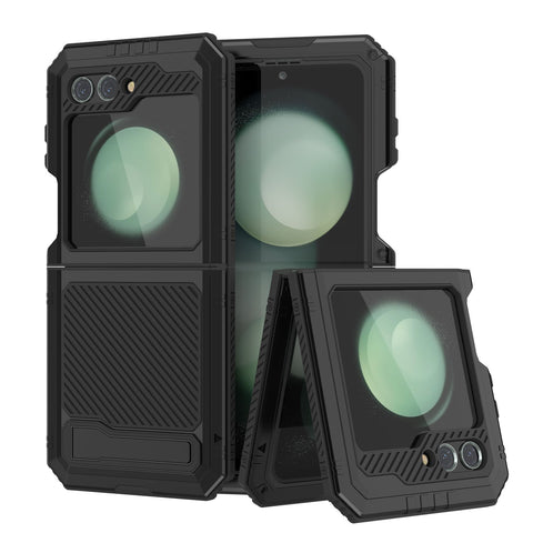 Galaxy Z Flip5 Metal Case, Heavy Duty Military Grade Armor Cover Full Body Hard [Black]