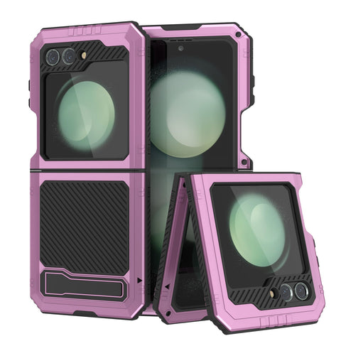 Galaxy Z Flip5 Metal Case, Heavy Duty Military Grade Armor Cover Full Body Hard [Pink]