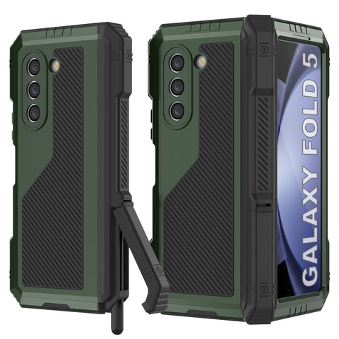 Galaxy Z Fold5 Metal Case, Heavy Duty Military Grade Armor Cover Full Body Hard [Dark Green]