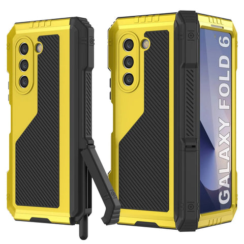 Galaxy Z Fold6 Metal Case, Heavy Duty Military Grade Armor Cover Full Body Hard [Neon]