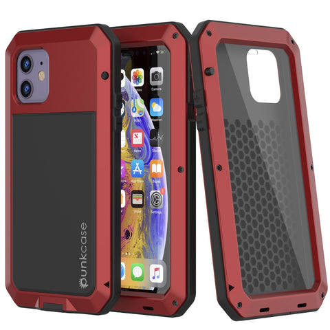 iPhone 11 Metal Case, Heavy Duty Military Grade Armor Cover [shock proof] Full Body Hard [Red]