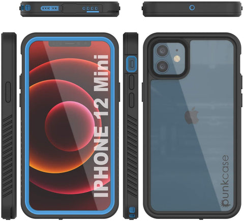iPhone 12 Mini Waterproof Case, Punkcase [Extreme Series] Armor Cover W/ Built In Screen Protector [Light Blue]