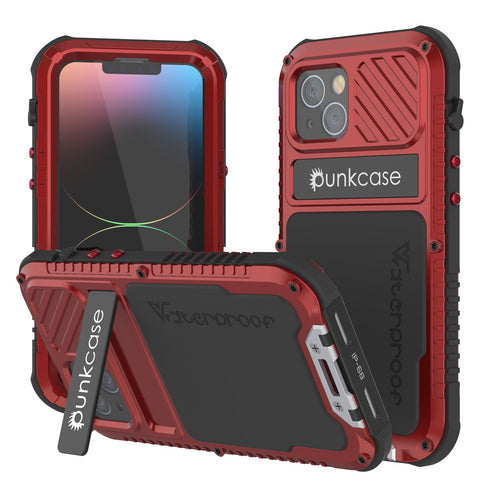 iPhone 14 Metal Extreme 3.0 Case, Heavy Duty Military Grade Armor Cover [shock proof] Waterproof Aluminum Case [Red]
