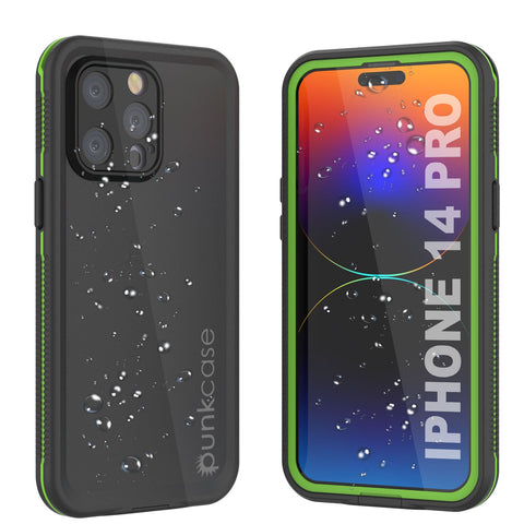 Punkcase iPhone 14 Pro Waterproof Case [Aqua Series] [Slim Fit] [IP68 Certified] [Shockproof] [Dirtproof] [Snowproof] Armor Cover Compatible W/Apple iPhone 14 Pro [Black-Green]