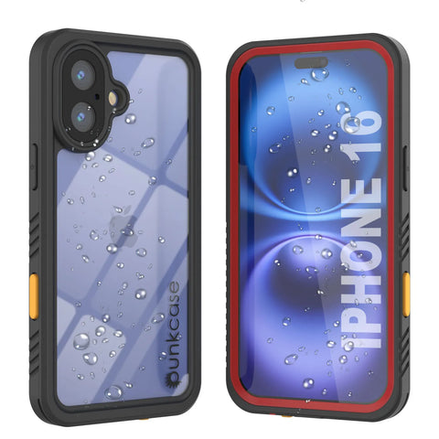 iPhone 16 Waterproof Case, Punkcase [Extreme Series] Armor Cover W/ Built In Screen Protector [Red]