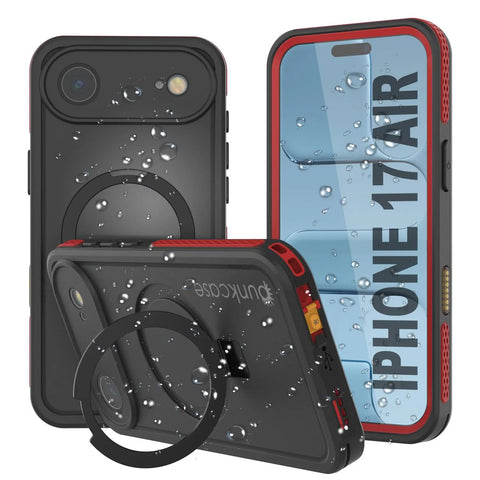 PunkCase for iPhone 17 Air Waterproof Case [Kickstud 2.0 Seriess] Protective IP68 Certified Cover W/Screen Protector & Kickstand | Ultra Slim 360 Protection for iPhone 17 Air (6.6") (Red)