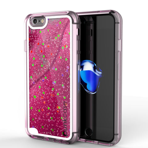 iPhone 7 Case, Punkcase [Liquid Pink Series] Protective Dual Layer Floating Glitter Cover with lots of Bling & Sparkle + 0.3mm Tempered Glass Screen Protector for Apple iPhone 7s
