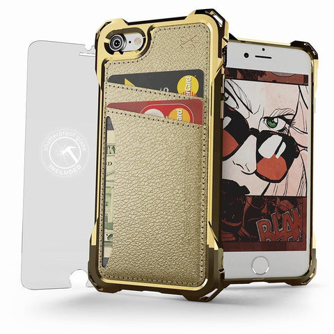 iPhone 8 Wallet Case, Ghostek Exec Gold Series | Slim Armor Hybrid Impact Bumper | TPU PU Leather Credit Card Slot Holder Sleeve Cover