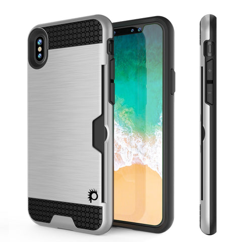 iPhone X Case, PUNKcase [SLOT Series] [Slim Fit] Dual-Layer Armor Cover w/Integrated Anti-Shock System, Credit Card Slot & Tempered Glass PUNKSHIELD Screen Protector for Apple iPhone X [White]