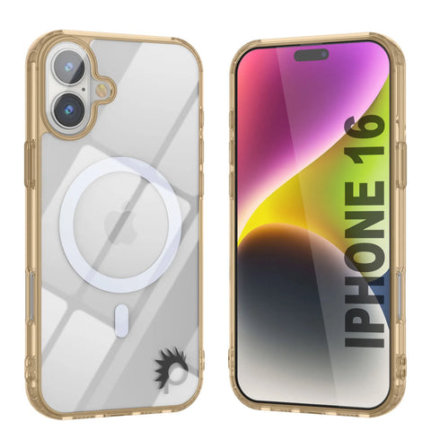 Punkcase iPhone 16 Magnetic Wireless Charging Case [ClearMag Series][Gold]