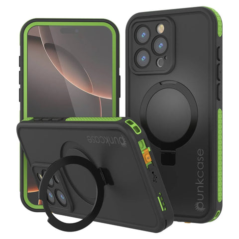 PunkCase for iPhone 16 pro Waterproof Case [Kickstud 2.0 Seriess] Protective IP68 Certified Cover W/Screen Protector & Kickstand | Ultra Slim 360 Protection for iPhone 16 pro (6.3") (Green)