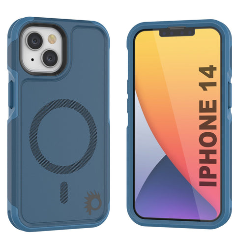 PunkCase iPhone 14 Case, [Spartan 2.0 Series] Clear Rugged Heavy Duty Cover W/Built in Screen Protector [Navy]