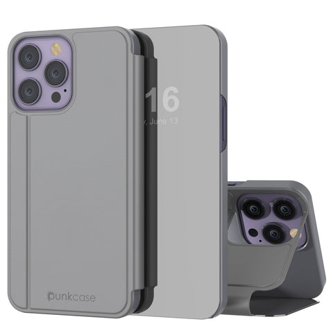 Punkcase iPhone 14 Pro Max Reflector Case Protective Flip Cover [Silver]