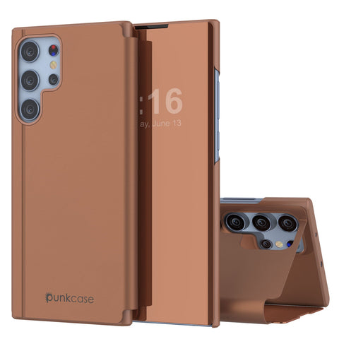 Punkcase S23 Ultra Reflector Case Protective Flip Cover W/Scratch Resistant Translucent Mirror Front & Non-Slip PU Leather Back Integrated Kickstand Compatible W/Samsung S23 Ultra (Rose)