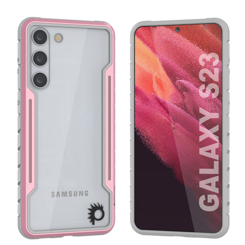 Punkcase Galaxy S23 Case [Armor Stealth Defense Series] Protective Military Grade Multilayer Cover W/Aluminum Frame [Clear Back] Ultimate Drop Protection for Your S23 5G (Rose-Gold)