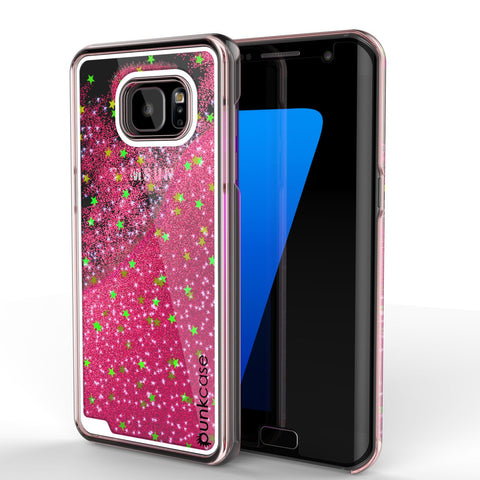 S7 Edge Case, PunkCase LIQUID Pink Series, Protective Dual Layer Floating Glitter Cover