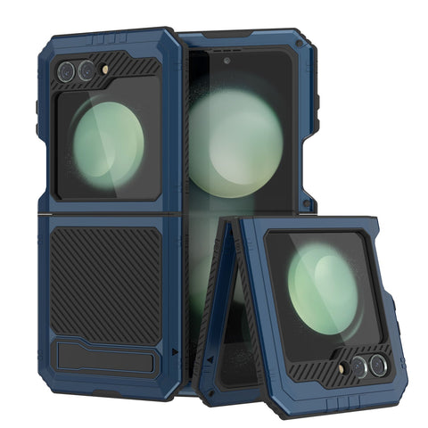 Galaxy Z Flip5 Metal Case, Heavy Duty Military Grade Armor Cover Full Body Hard [Blue]