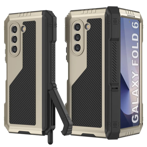 Galaxy Z Fold6 Metal Case, Heavy Duty Military Grade Armor Cover Full Body Hard [Gold]