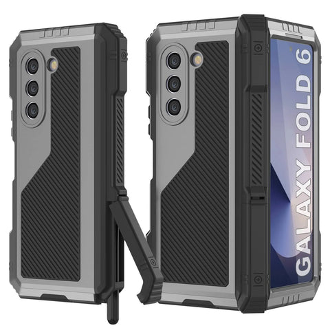 Galaxy Z Fold6 Metal Case, Heavy Duty Military Grade Armor Cover Full Body Hard [Silver]