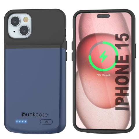 iPhone 15 Battery Case, PunkJuice 5000mAH Fast Charging Power Bank W/ Screen Protector | [Navy Blue]