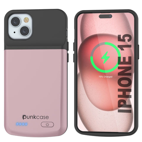 iPhone 15 Battery Case, PunkJuice 5000mAH Fast Charging Power Bank W/ Screen Protector | [Rose-Gold]