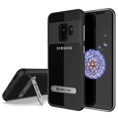 Galaxy S9 Case, PUNKcase [LUCID 3.0 Series] [Slim Fit] [Clear Back] Armor Cover w/ Integrated Kickstand, Anti-Shock System & PUNKSHIELD Screen Protector for Samsung Galaxy S9 [Black]